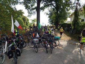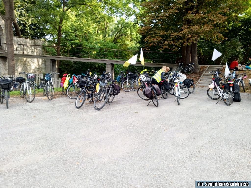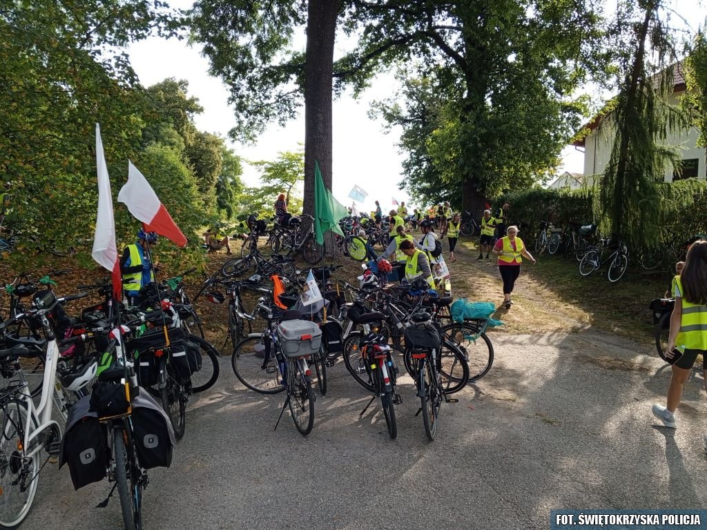 Nad bezpieczeństwem pielgrzymów, ich bezpiecznym przejazdem i płynną organizacją ruchu na trasie czuwają policjanci z Wydziału Ruchu Drogowego Komendy Powiatowej Policji w Pińczowie. Funkcjonariusze eskortują grupę i dbają, aby rowerzyści bezpiecznie dotarli do celu swojej drogi.