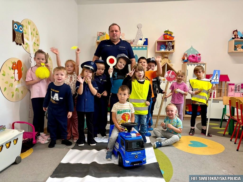 Zajęcia prowadzili dzielnicowi oraz funkcjonariusz zajmujący się profilaktyką społeczną. W przedszkolu spotkanie miało szczególnie atrakcyjną formę – dzieci, ubrane w policyjne przebrania i wyposażone w rekwizyty, mogły poczuć się jak prawdziwi stróże prawa. Wspólnie z policjantami uczyły się zasad bezpiecznego poruszania się po drogach, w tym prawidłowego przechodzenia przez jezdnię i korzystania z elementów odblaskowych poza obszarem zabudowanym.