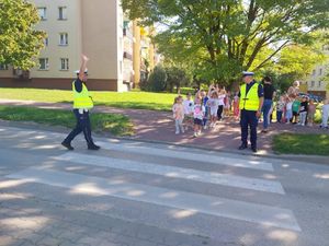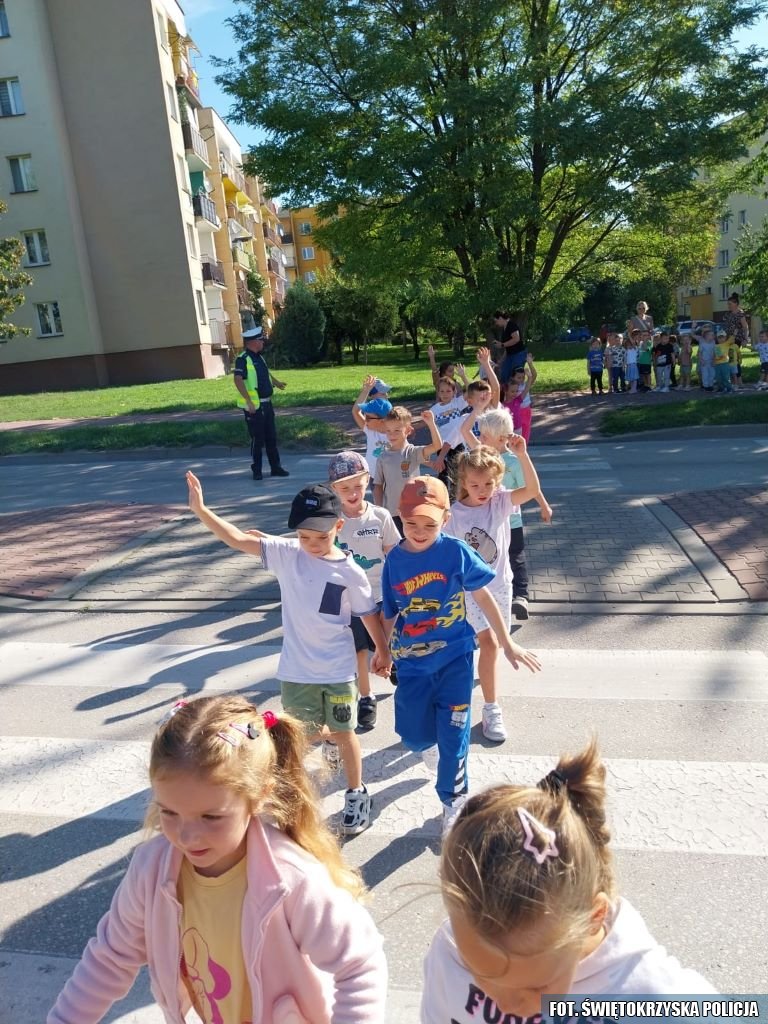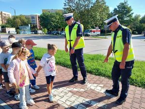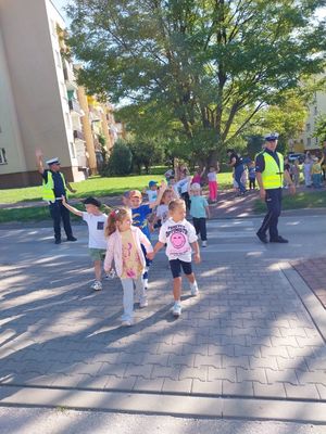 Z kolei wczoraj w Przedszkolu nr 3 gościcli policjanci z Wydziału Ruchu Drogowego. Tym razem poza pogadanką, działania miały charakter praktyczny. Policjanci wyszli z dziećmi na pobliską ulicę, aby wspólnie ćwiczyć prawidłowe przechodzenie przez przejście dla pieszych. Maluchy mogły w praktyce utrwalić zasady bezpieczeństwa: zatrzymywanie się przed przejściem, patrzenie w obie strony, a także sygnalizowanie chęci przejścia. Funkcjonariusze zwrócili uwagę na rolę świateł, znaków drogowych i sygnałów wydawanych przez policjanta kierującego ruchem.