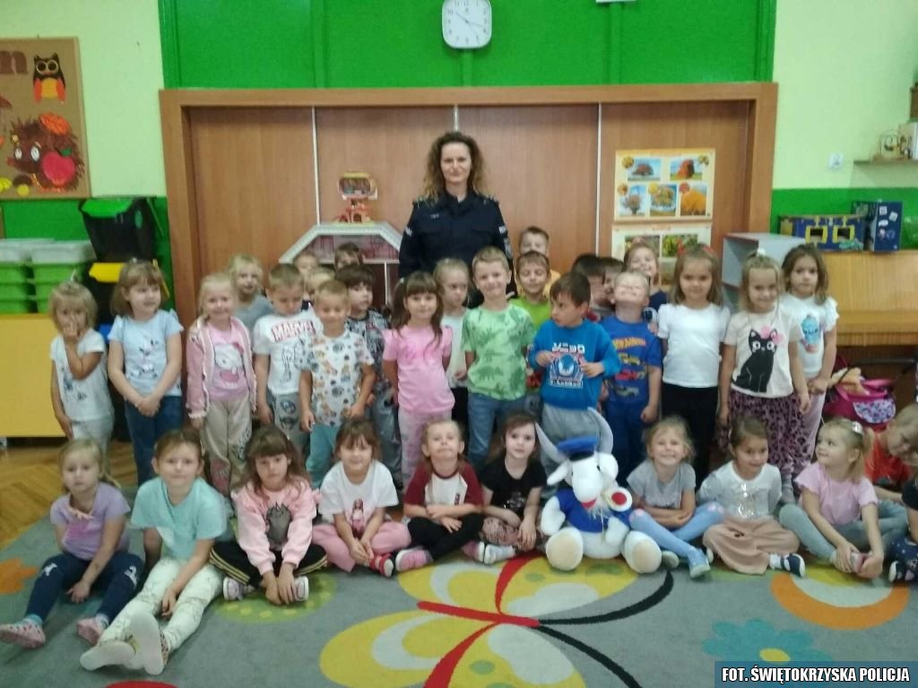 W dniu dzisiejszym dzielnicowa z Komendy Powiatowej Policji w Pińczowie st.asp. Jolanta Witkowska spotkała się z namłodszymi w Publicznym Przedszkolu nr 2. W przystępny i ciekawy sposób opowiedziała dzieciom o zasadach bezpieczeństwa na drodze. Najmłodsi dowiedzieli się, dlaczego warto nosić elementy odblaskowe, jak prawidłowo przechodzić przez jezdnię oraz co zrobić, gdy zgubią się w drodze do domu lub szkoły. Policjantka odpowiadała również na liczne pytania przedszkolaków, które chętnie dzieliły się swoimi spostrzeżeniami.