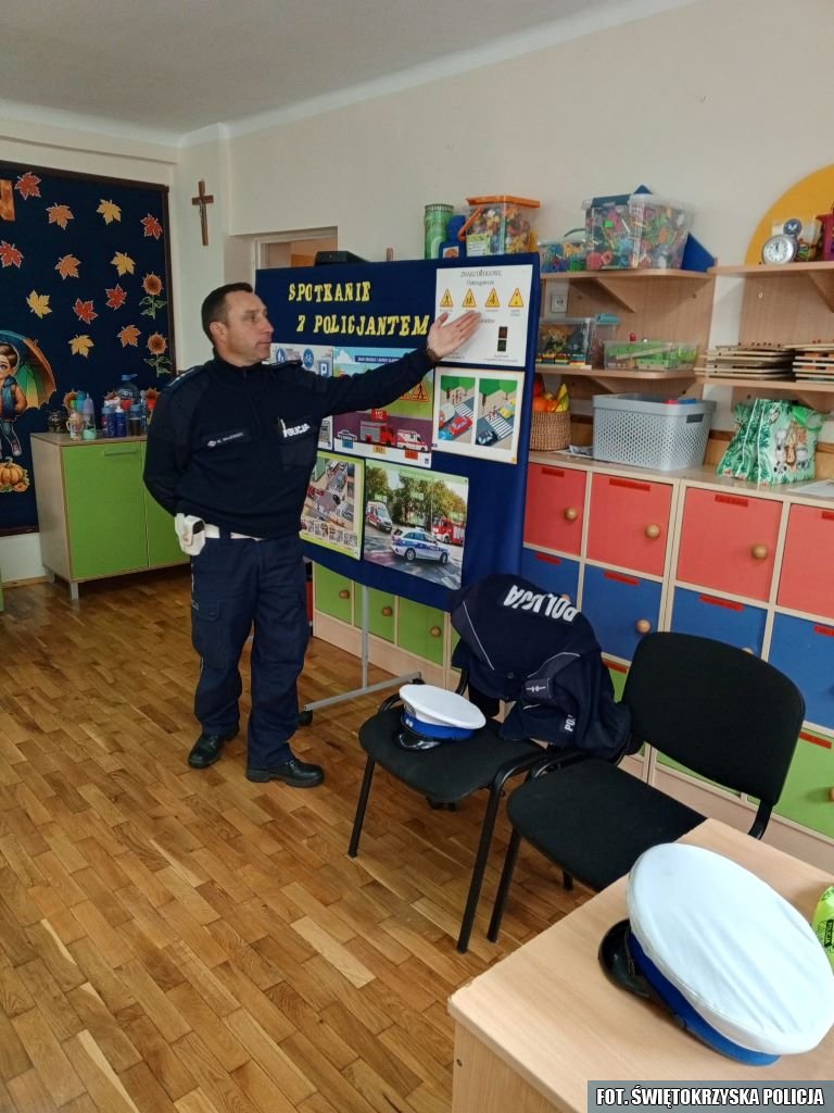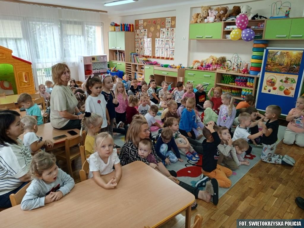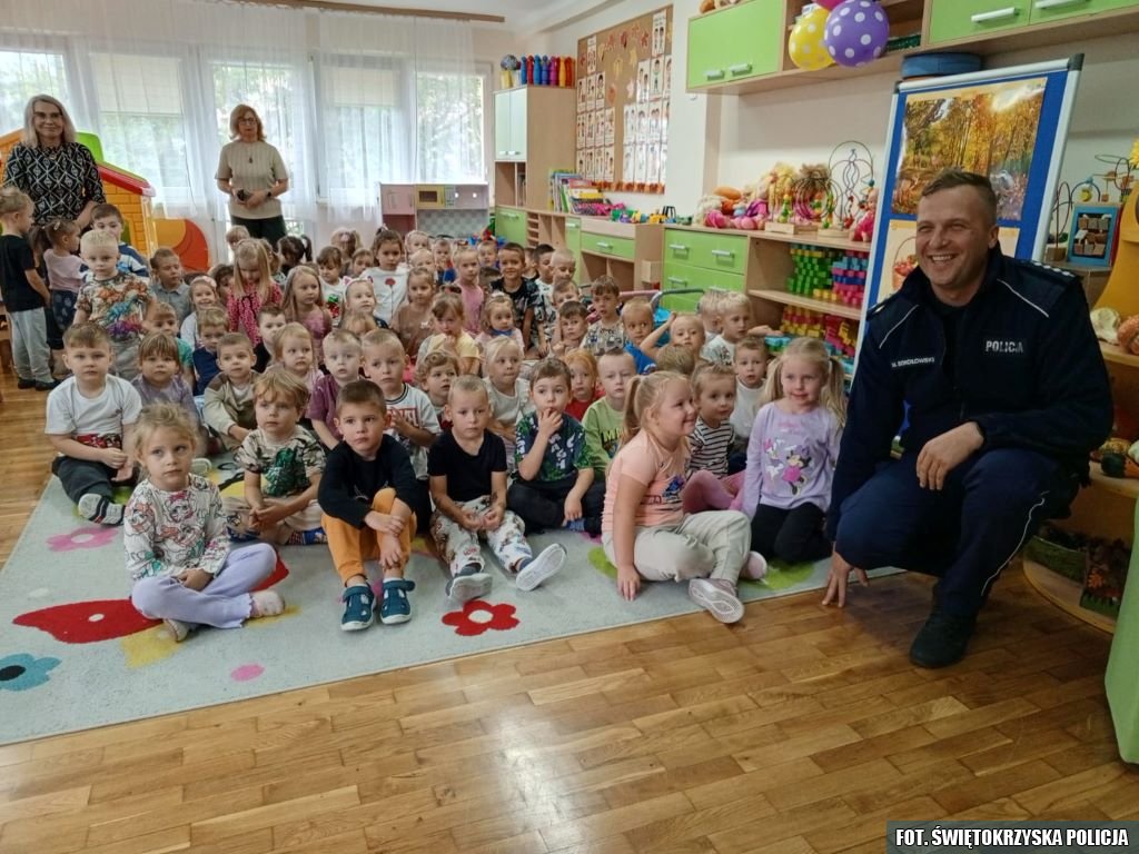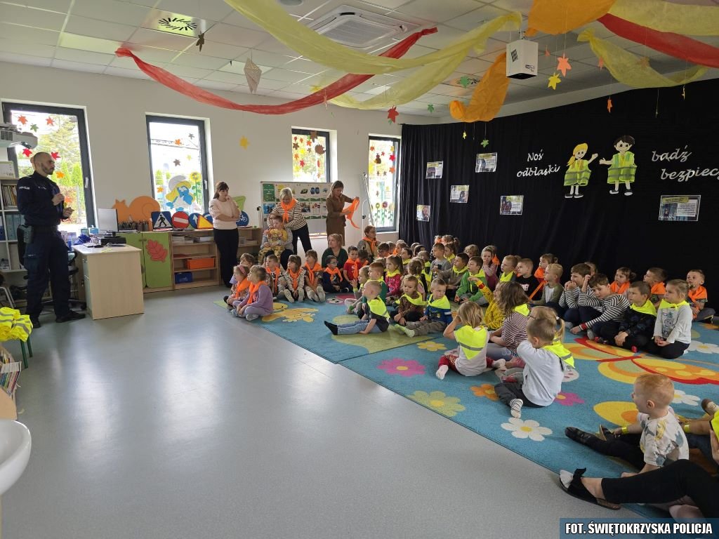 W ramach ogólnopolskiej akcji „Świeć Przykładem – Noś odblaski”, funkcjonariusze Komendy Powiatowej Policji w Pińczowie i Komisariatu Policji w Działoszycach odwiedzili najmłodszych mieszkańców regionu. W poniedziałek dzielnicowy spotkał się z dziećmi w Przedszkolu Samorządowym nr 2 w Działoszycach, natomiast we wtorek policjanci z Wydziału Ruchu Drogowego KPP Pińczów przeprowadzili zajęcia w Przedszkolu nr 1 przy ul. Szkolnej w Pińczowie.