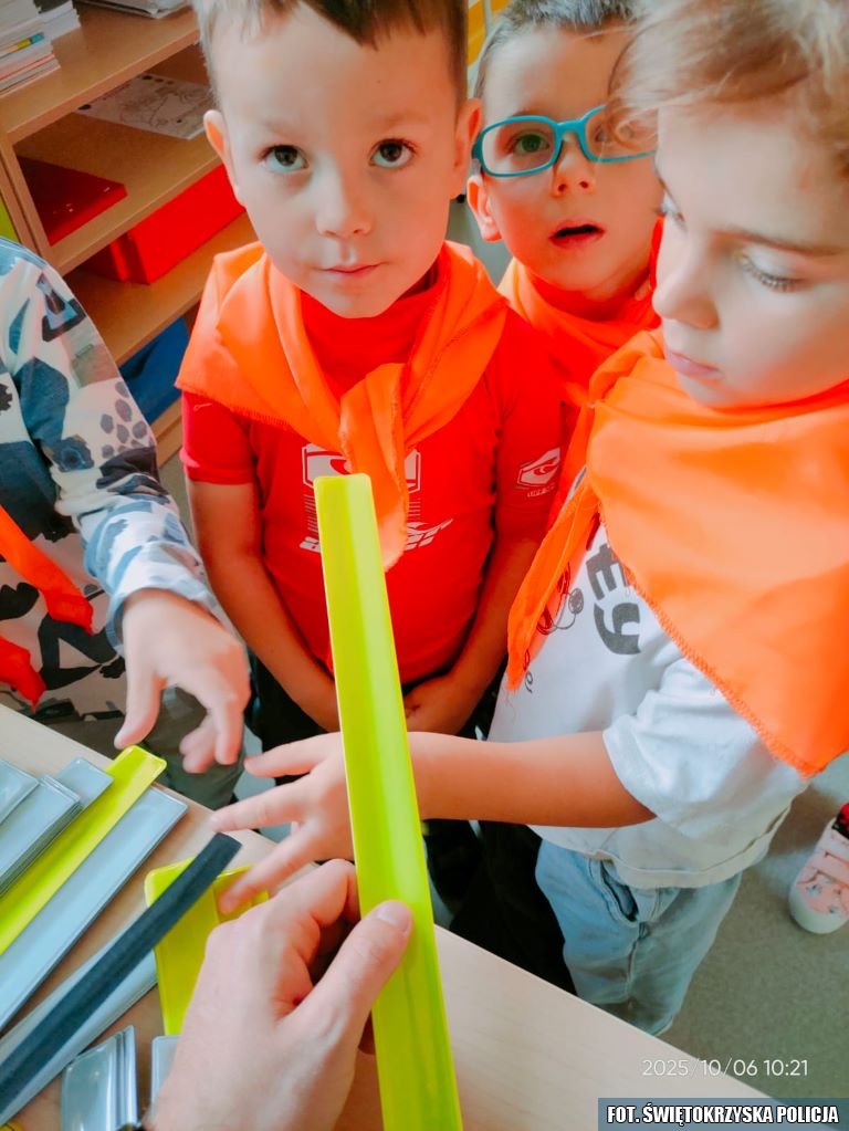 Na zakończenie zajęć policjanci wręczyli dzieciom i wychowawcom odblaski – kolorowe zawieszki i opaski, które mają przypominać o zasadzie: „Świeć Przykładem – Noś odblaski”. Dzięki nim najmłodsi będą bardziej widoczni i bezpieczni podczas codziennych spacerów czy drogi do przedszkola.
