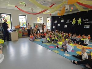 Podczas prelekcji mundurowi w ciekawy i dostosowany do wieku dzieci sposób omawiali zasady bezpieczeństwa, a także odpowiadali na pytania najmłodszych. Dzieci aktywnie uczestniczyły w rozmowie, chętnie dzieliły się swoimi doświadczeniami i spostrzeżeniami dotyczącymi ruchu drogowego.
