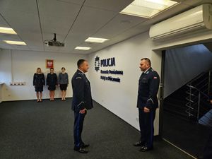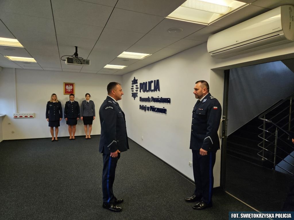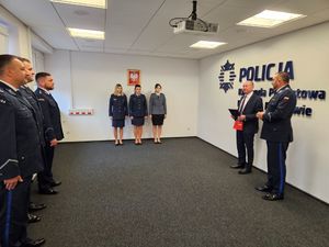 Uroczystość rozpoczął meldunek złożony Komendantowi Powiatowemu Policji w Pińczowie, inspektorowi Marcinowi Rasale, przez Komendanta Komisariatu Policji w Działoszycach, podinspektora Mirosława Prusickiego, który poprowadził dzisiejszą zbiórkę.