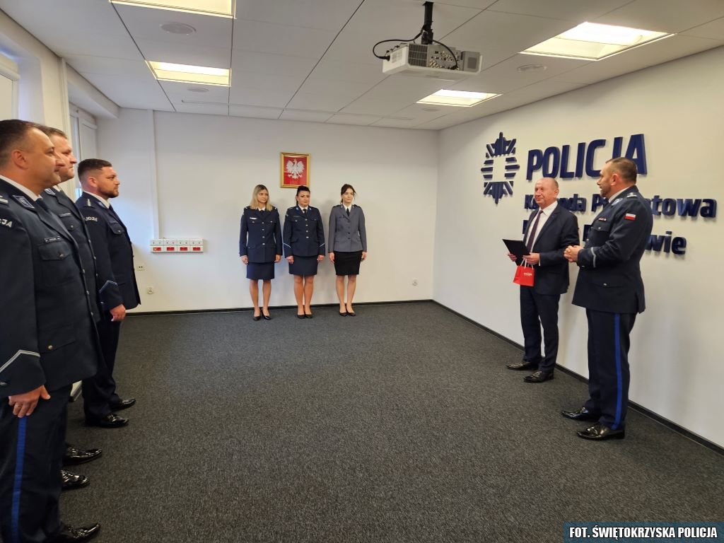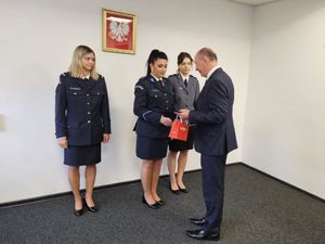W uroczystości wzięła udział kadra kierownicza komendy oraz Starosta Powiatu Pińczowskiego, Pan Zdzisław Leks, który w swoim przemówieniu podkreślił ogromną rolę kobiet w formacji policyjnej oraz ich wkład w bezpieczeństwo lokalnej społeczności. Na ręce trzech wyróżnionych policjantek starosta przekazał listy gratulacyjne oraz upominki, dziękując im za codzienny trud, zaangażowanie i profesjonalizm w służbie.