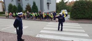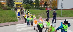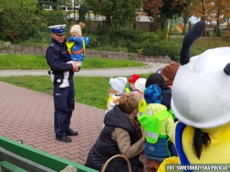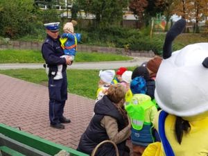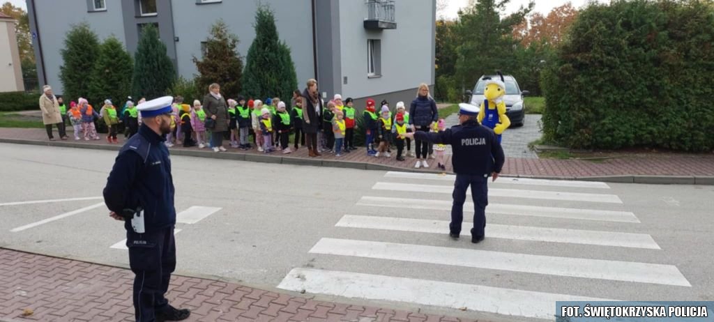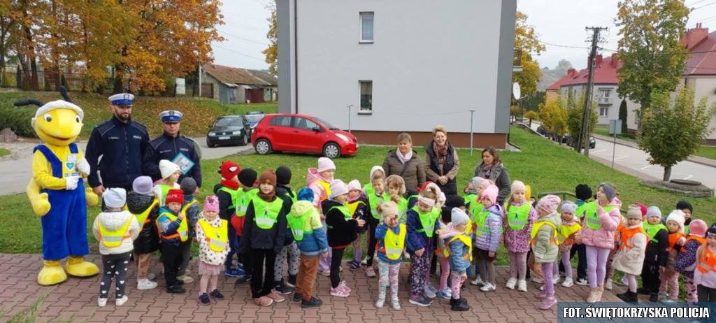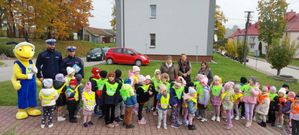 Podczas pogadanki funkcjonariusze przypomnieli najmłodszym podstawowe zasady ruchu drogowego – jak bezpiecznie przechodzić przez jezdnię, na co zwracać uwagę przy drodze oraz dlaczego tak ważne jest noszenie elementów odblaskowych, zwłaszcza jesienią i zimą, gdy szybciej zapada zmrok.