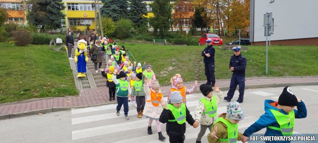Dzieci aktywnie uczestniczyły w rozmowie, a następnie mogły w praktyce poćwiczyć prawidłowe przechodzenie przez jezdnię pod okiem policjantów. Spotkanie uatrakcyjniła maskotka PSB Mrówki, która wzbudziła ogromny entuzjazm wśród najmłodszych. Nie zabrakło wspólnych zdjęć, śmiechu i drobnych upominków – oczywiście z odblaskami, które pomogą dzieciom być lepiej widocznymi na drodze.