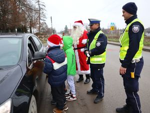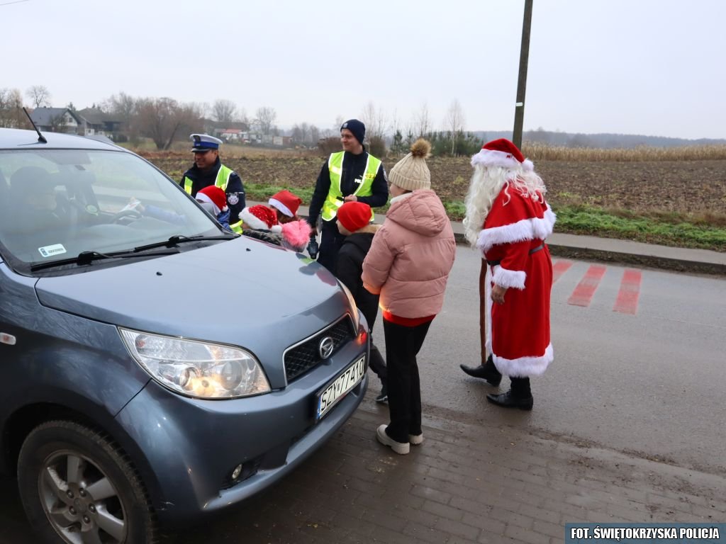 Tradycyjnie, jak co roku z okazji Mikołajek, policjanci z Wydziału Ruchu Drogowego Komendy Powiatowej Policji w Pińczowie wraz z uczniami Szkoły Podstawowej w Młodzawach Dużych przeprowadzili nietypową akcję prewencyjną „Mikołaje w mundurach”. Celem działań było zwrócenie uwagi kierujących na kwestie związane z przestrzeganiem przepisów ruchu drogowego i promowanie odpowiedzialnych postaw za kierownicą.
