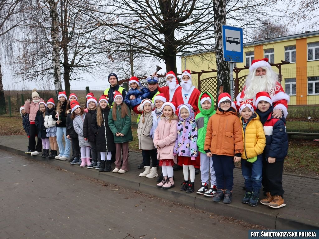 5 grudnia, w przeddzień Mikołajek, funkcjonariusze z Wydziału Ruchu Drogowego Komendy Powiatowej Policji w Pińczowie wspólnie z uczniami klas I-III Szkoły Podstawowej w Młodzawach Dużych, po raz kolejny przeprowadzili świąteczną akcję profilaktyczną "Mikołaje w mundurach". Jej celem było zwrócenie uwagi kierowców na konieczność przestrzegania przepisów ruchu drogowego oraz promowanie odpowiedzialnych zachowań za kierownicą.